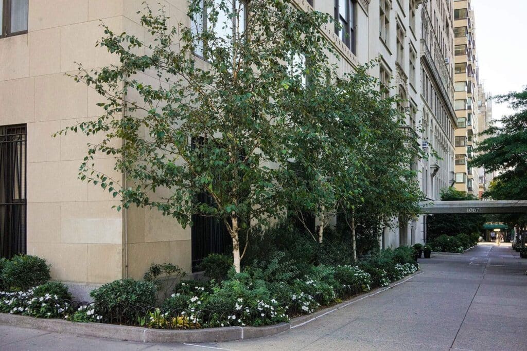 Commissioned for a co-op building on the Upper East Side, the project establishes a semi-evergreen, predominantly native planting palette within a highly visible urban context.